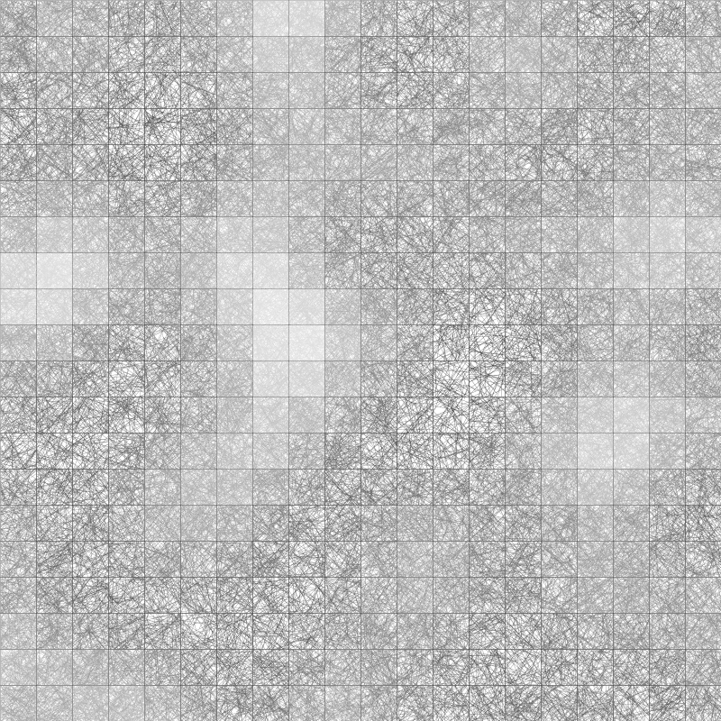 What happens if you randomly place two spirals in a flow field? Four? Eight? 16, 32, 64, 128, 256?