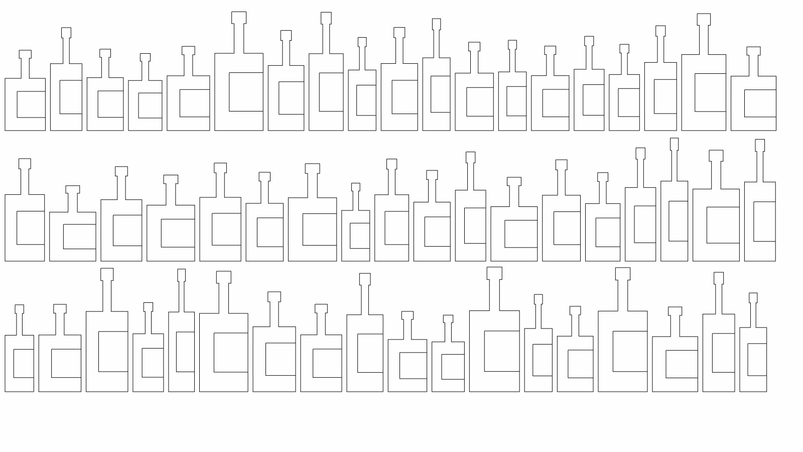 Three rects each. Random width, height. Fixed proportions.