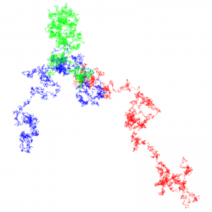 10,000 digits of PI (blue), PHI (red), SQRT(2) (green):