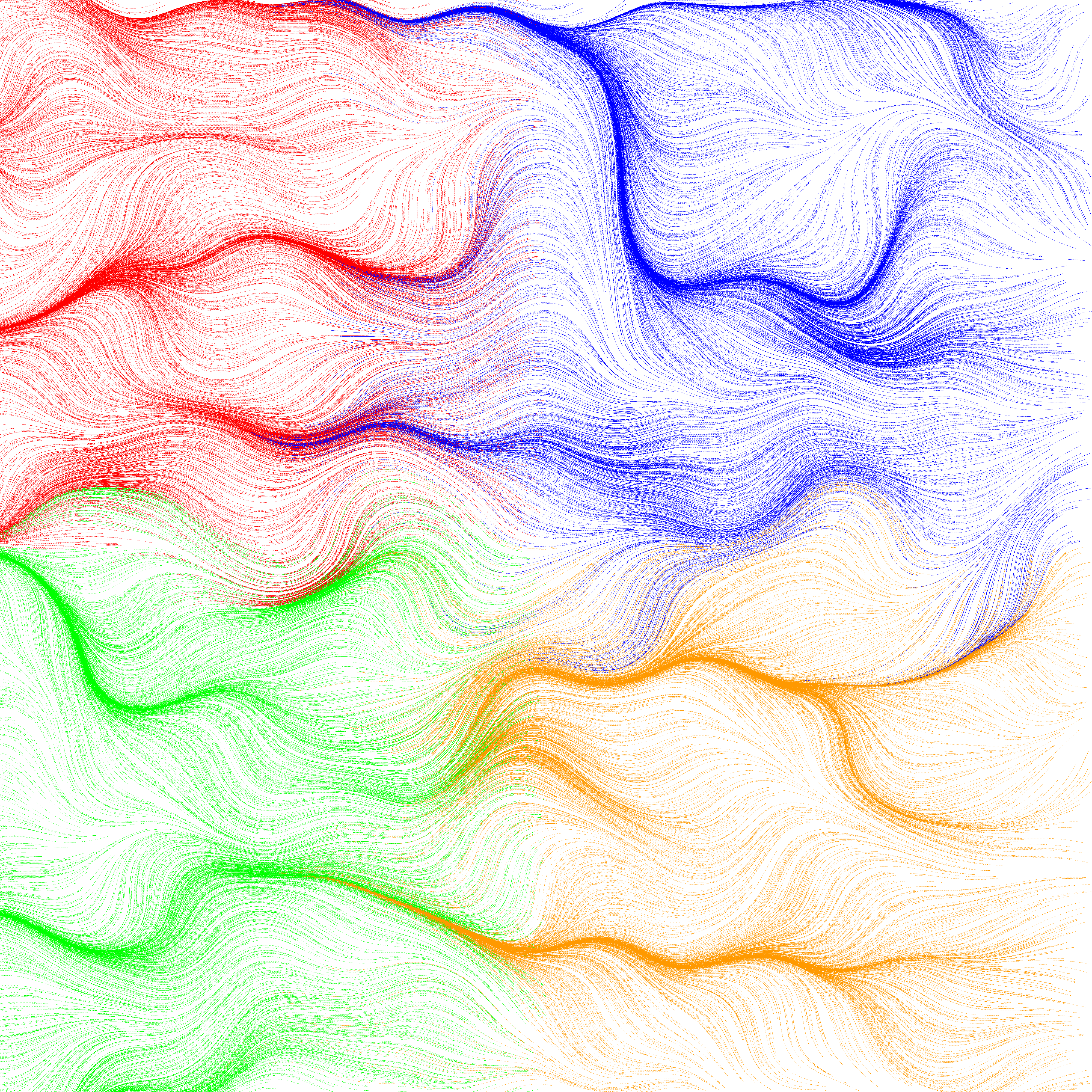 Read more...Start out as Lissajous Curves, but velocity is allowed to vary randomly.