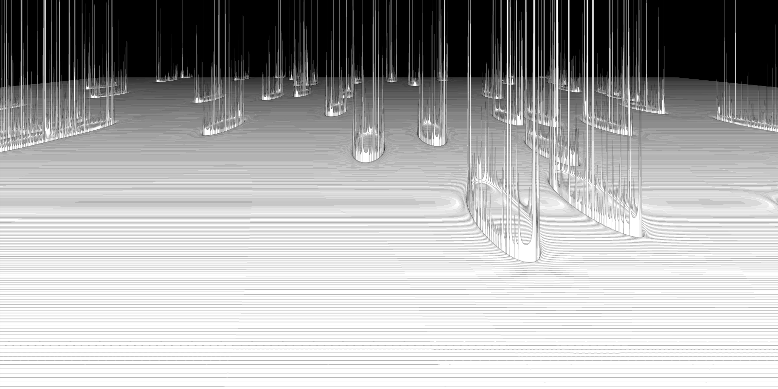 Let the third in yesterday’s series run twice as long – 10,000 particles trails. Different Perlin Noise seed.